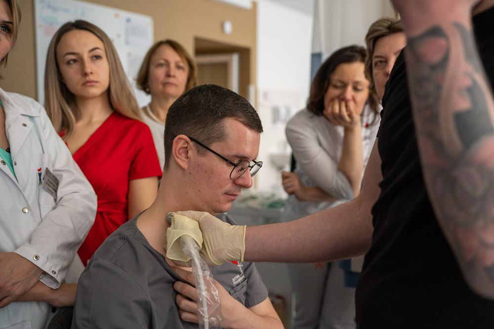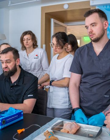 На цьому тренінгу практично було показано техніку постановки артеріальних та венозних канюль під ультразвуковим контролем, їх правильне позиціонування. налагодження ліній, дотримання правил асептики та антисептики. Учасники практично відпрацювали маніпуляції, вибір доступу : катетер, тонельований катетер, фістула, підшкірний шунт, постановку центрального венозного доступу під ультразвуковим контролем, верифікація позиції кінчика венозного катетера, налагодження системи вимірювання інвазивного тиску. Весь курс супроводжувався жвавою дискусією від учасників.