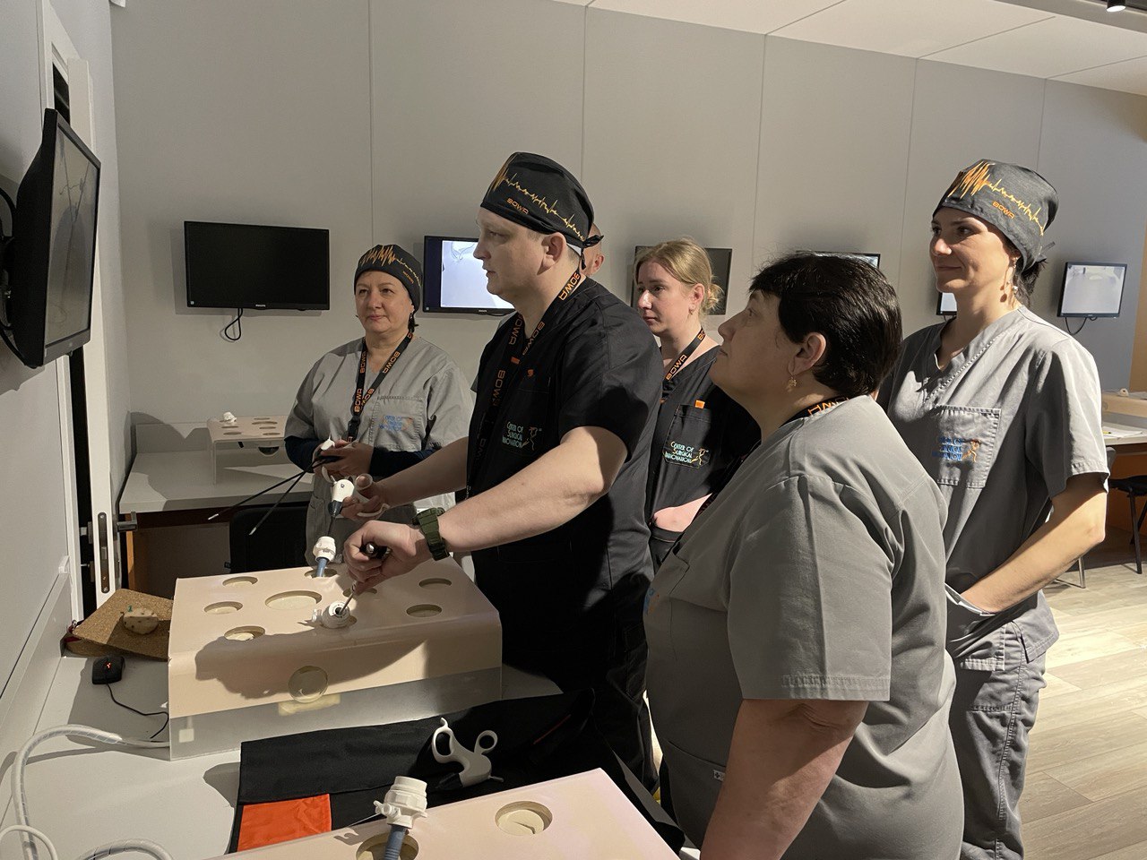 Особливу увагу було приділено практичним заняттям на тренажерах-симуляторах, де курсанти відпрацьовували навички дисекції, лігування судин, накладання лапароскопічних швів.