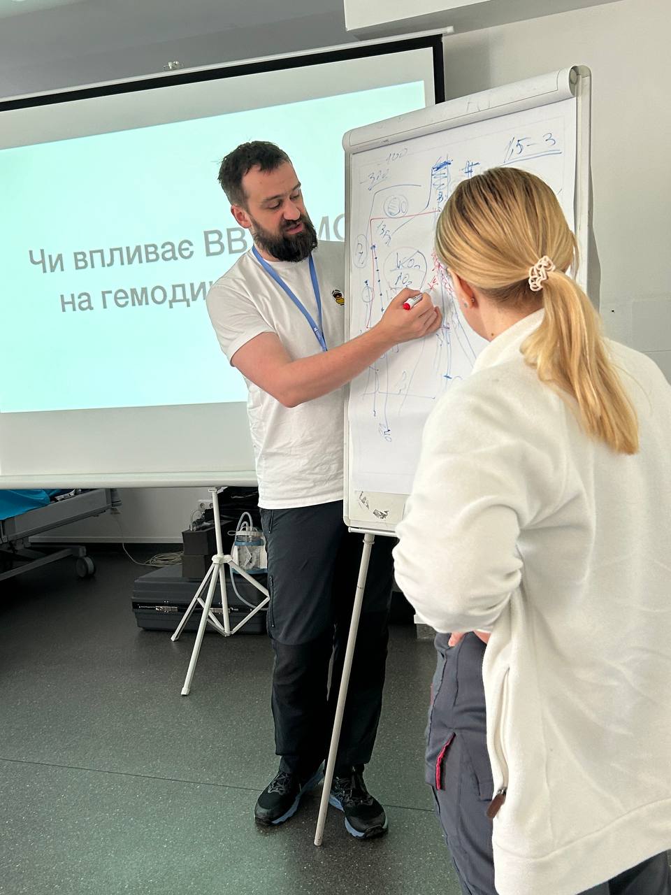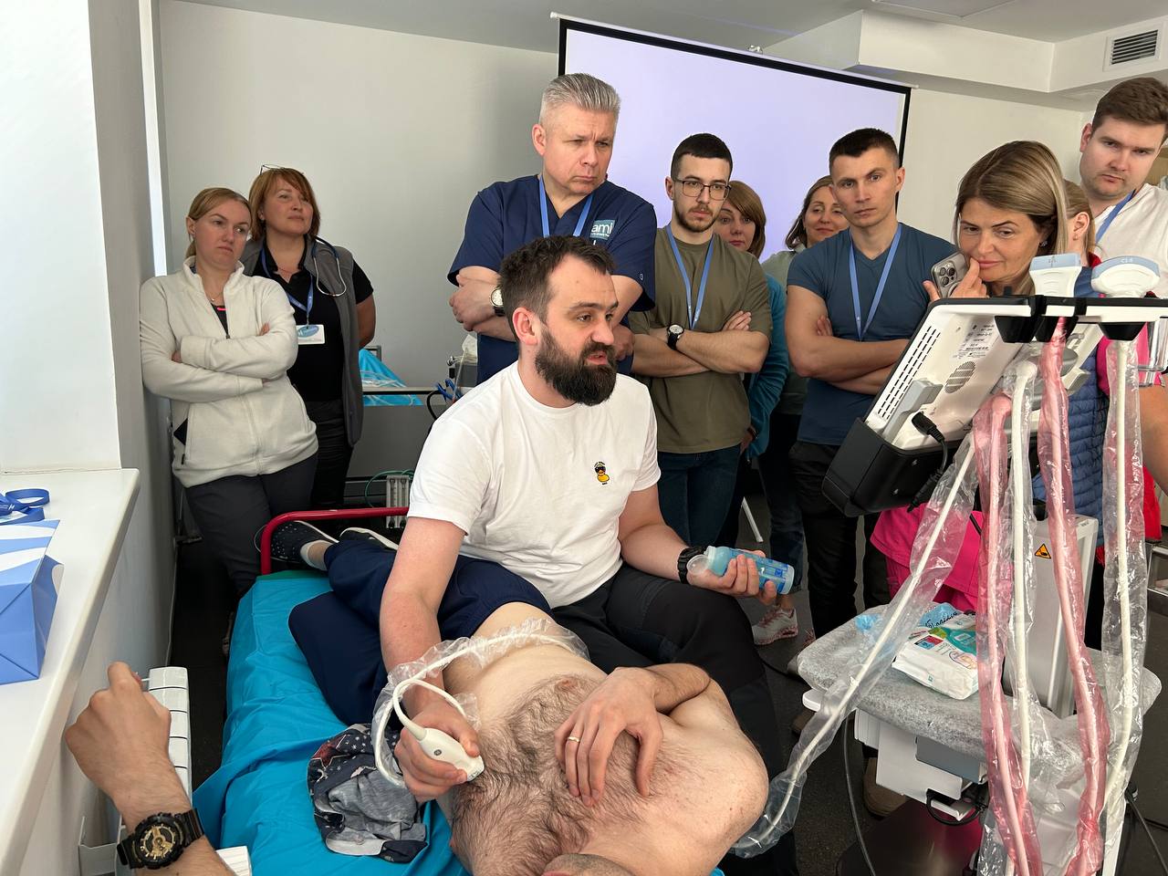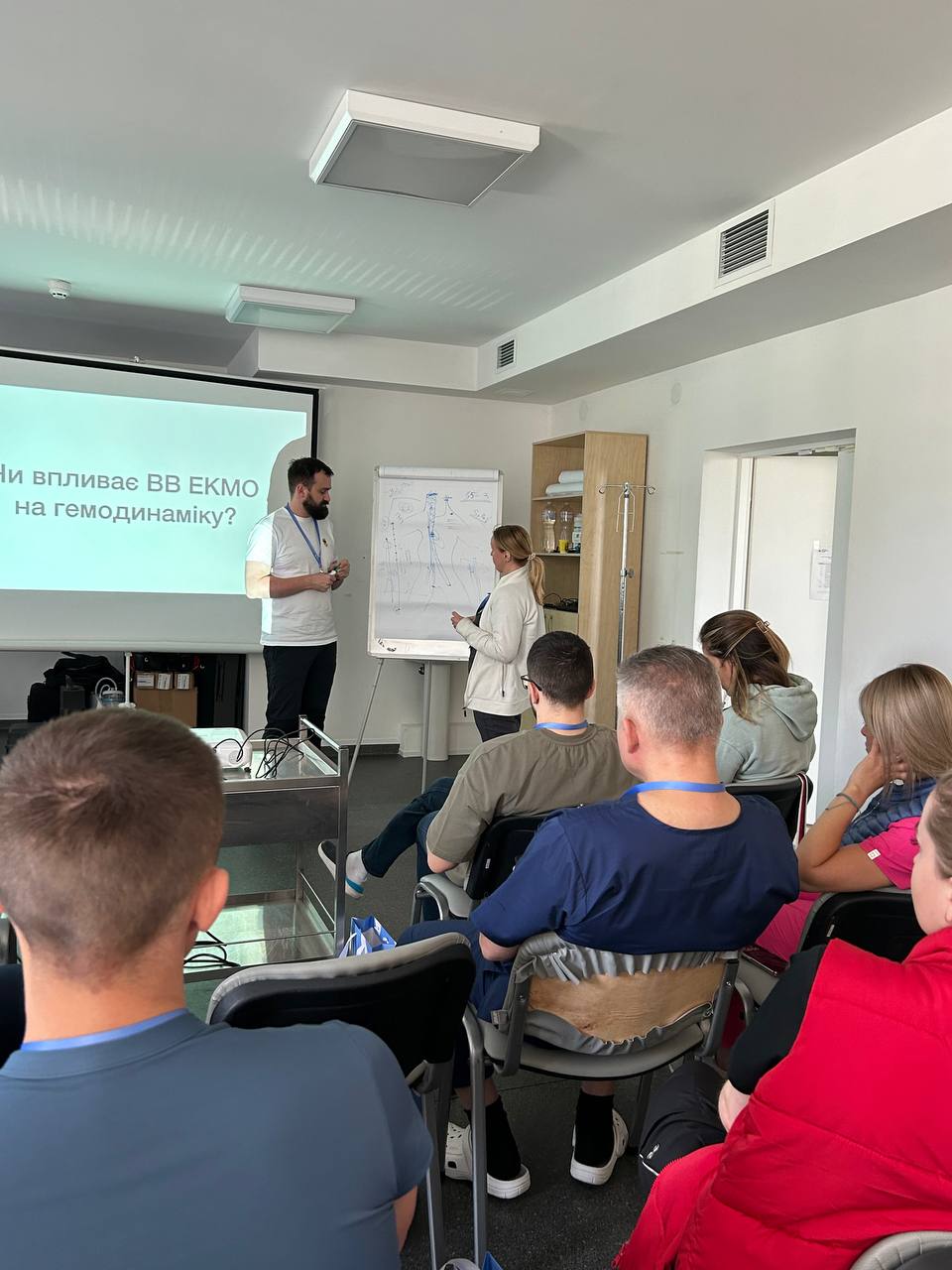 Практично курсанти відпрацьовували оцінку правил відділів серця на моделях, холістичний підхід до приліжкового УЗД пацієнта на ЕКМО.