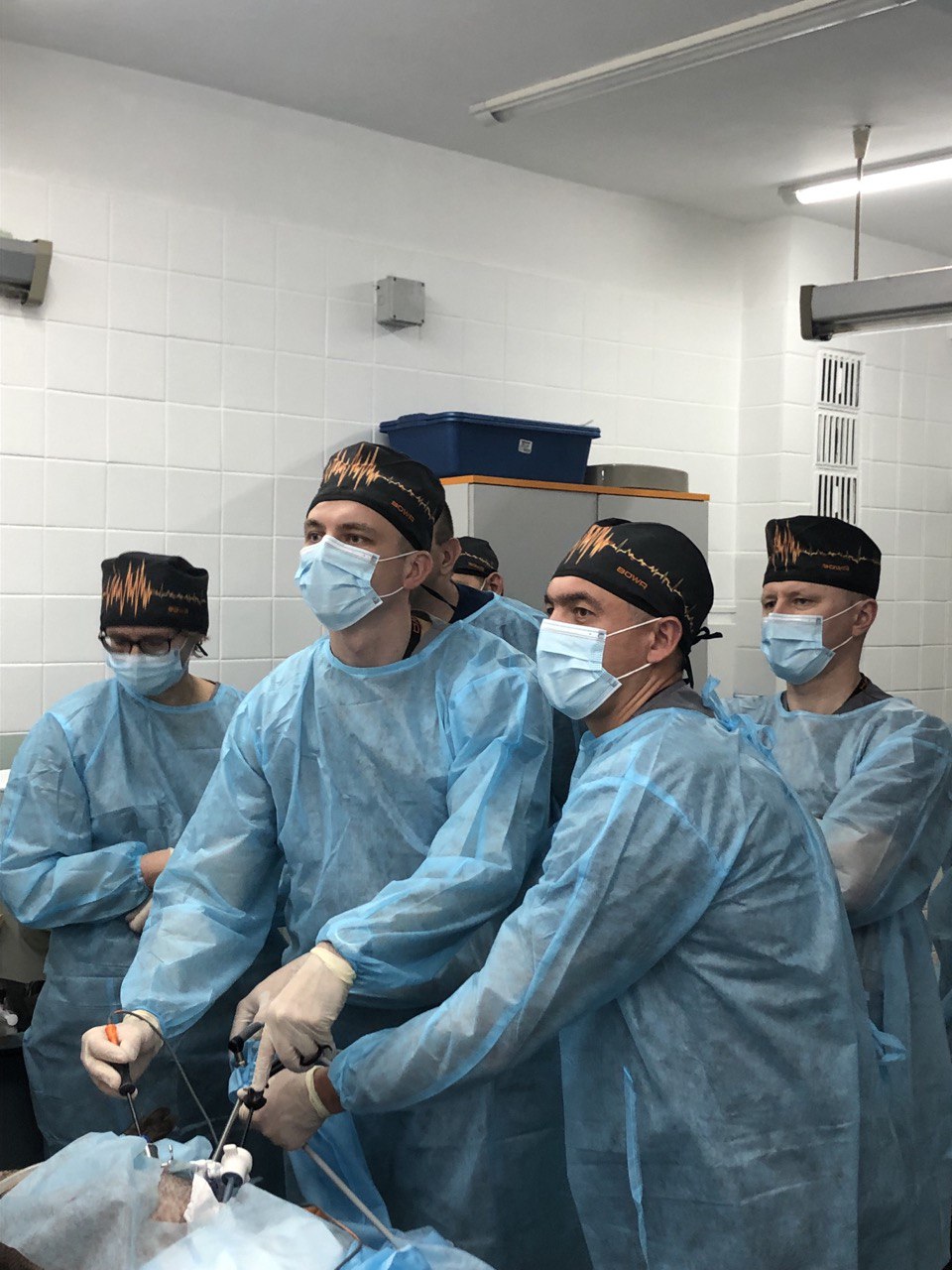 В експериментальному відділі НІХТ ім. О.О. Шалімова учасники курсу відпрацювали методики лапароскопічної герніопластики: TAPP, TEP, іPOM, фундоплікація. В ході відпрацювання практичних навичок курсанти мали можливість спробувати вживу установку різних сітчастих протезів і фіксацію сітки герніостеплером. Щиро дякуємо куратору та лекторам семінару-практикуму О.М. Литвиненко, І.І. Лукечі, за проведення насиченого і продуктивного курсу.
