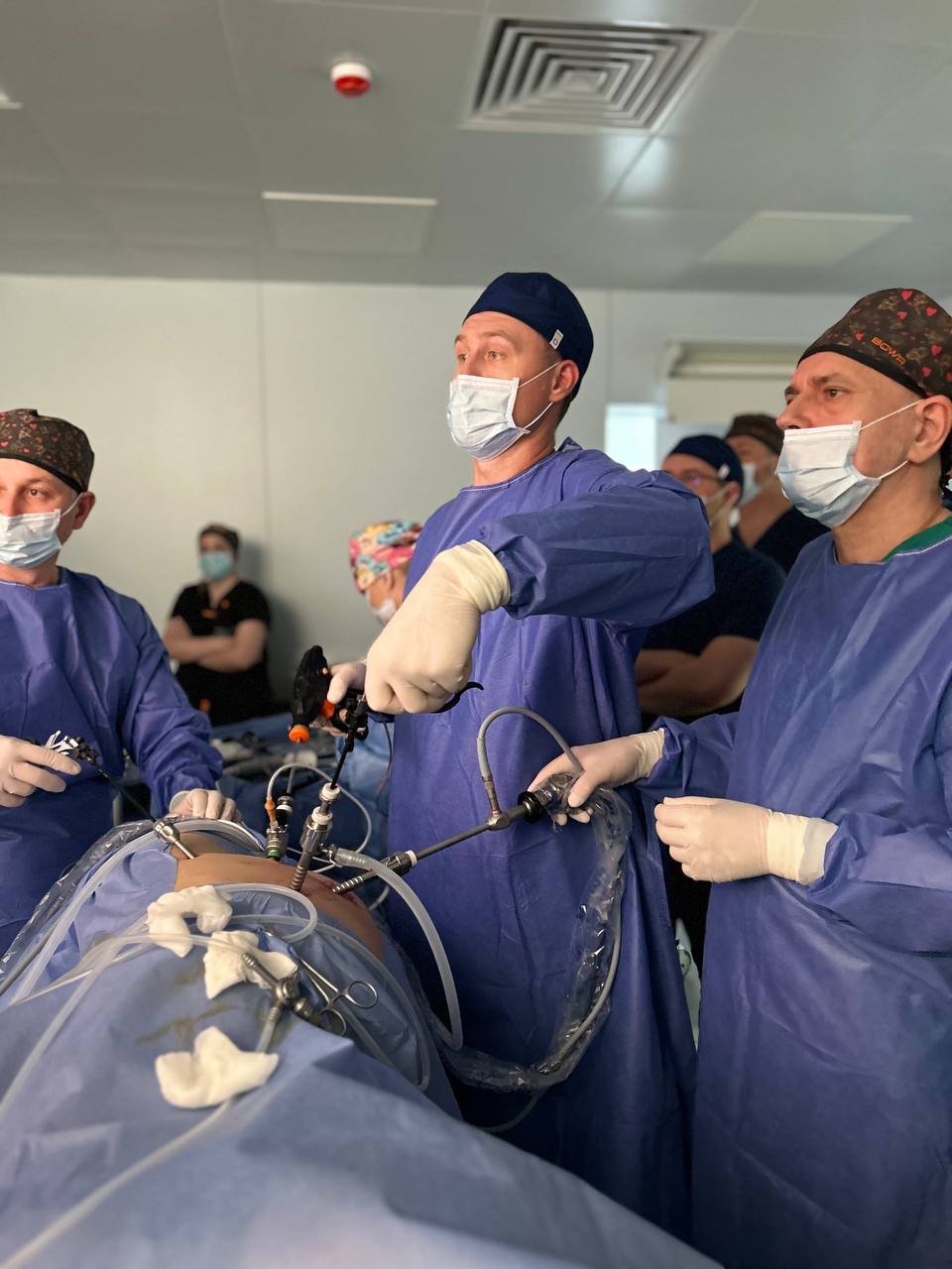 - Освоєння лапароскопічного доступу для одночасної роботи в різних поверхах черевної порожнини;