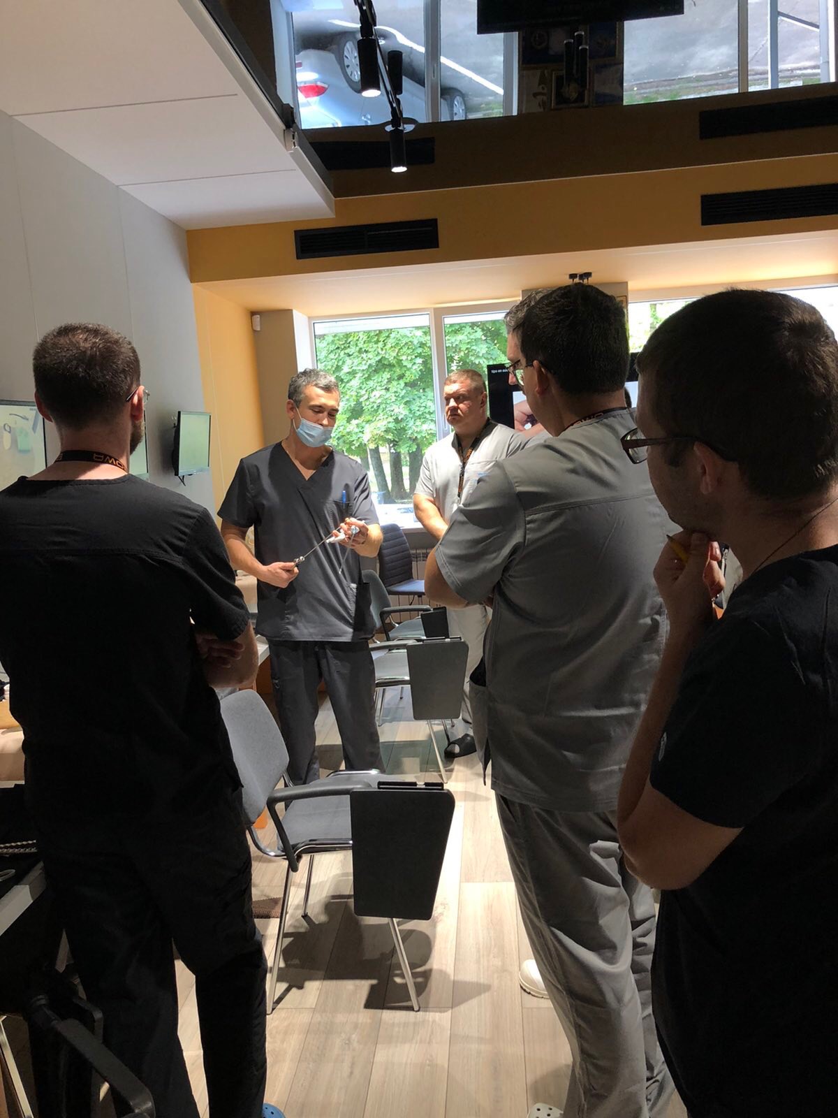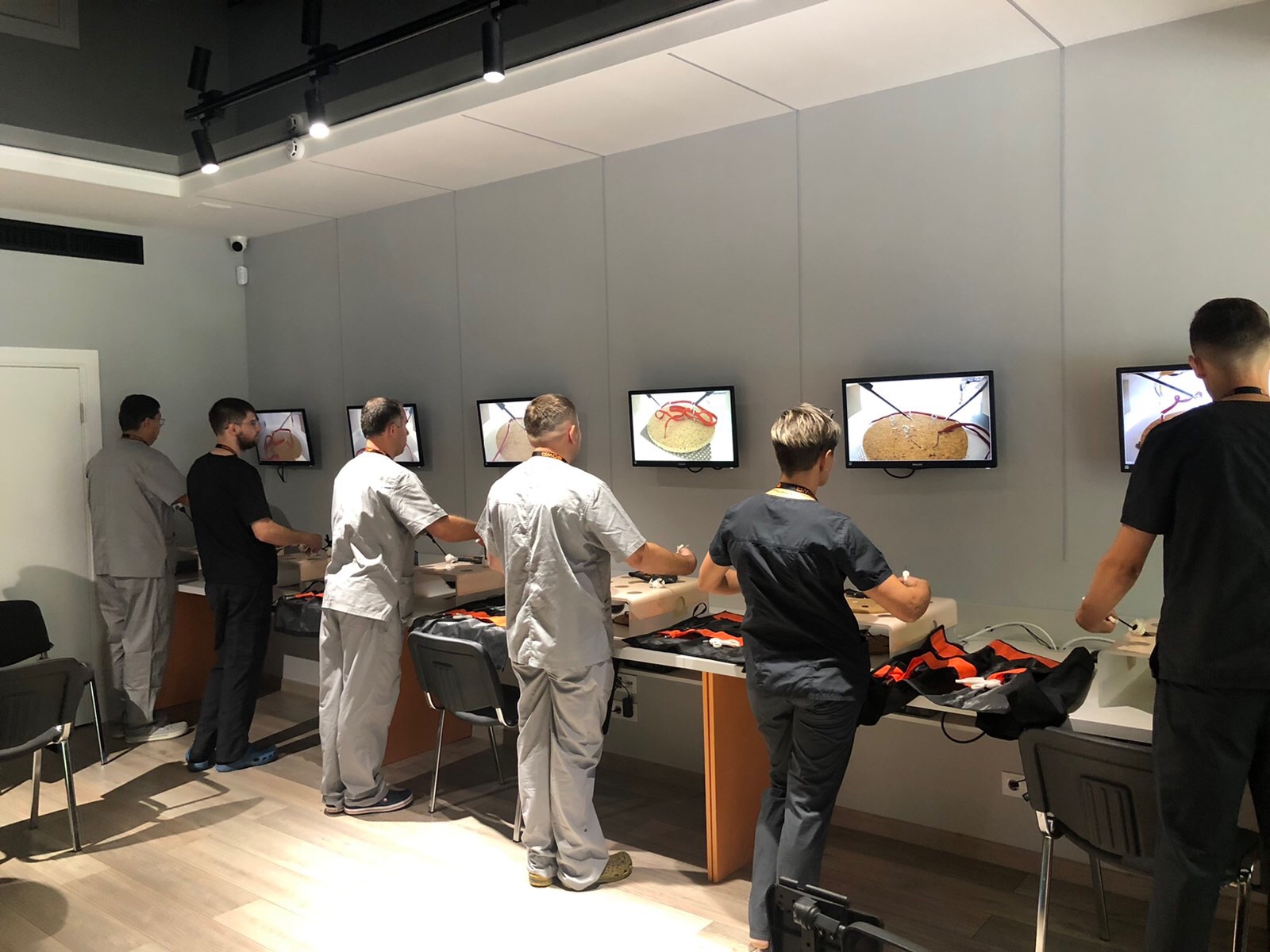 На лапароскопічних тренажерах курсанти відпрацьовували навички диссекції, лігування, шиття та формування вузлів.