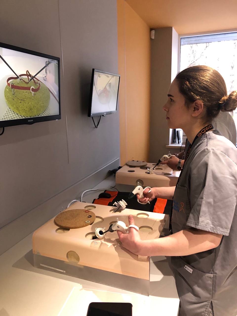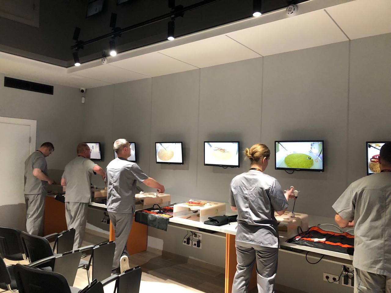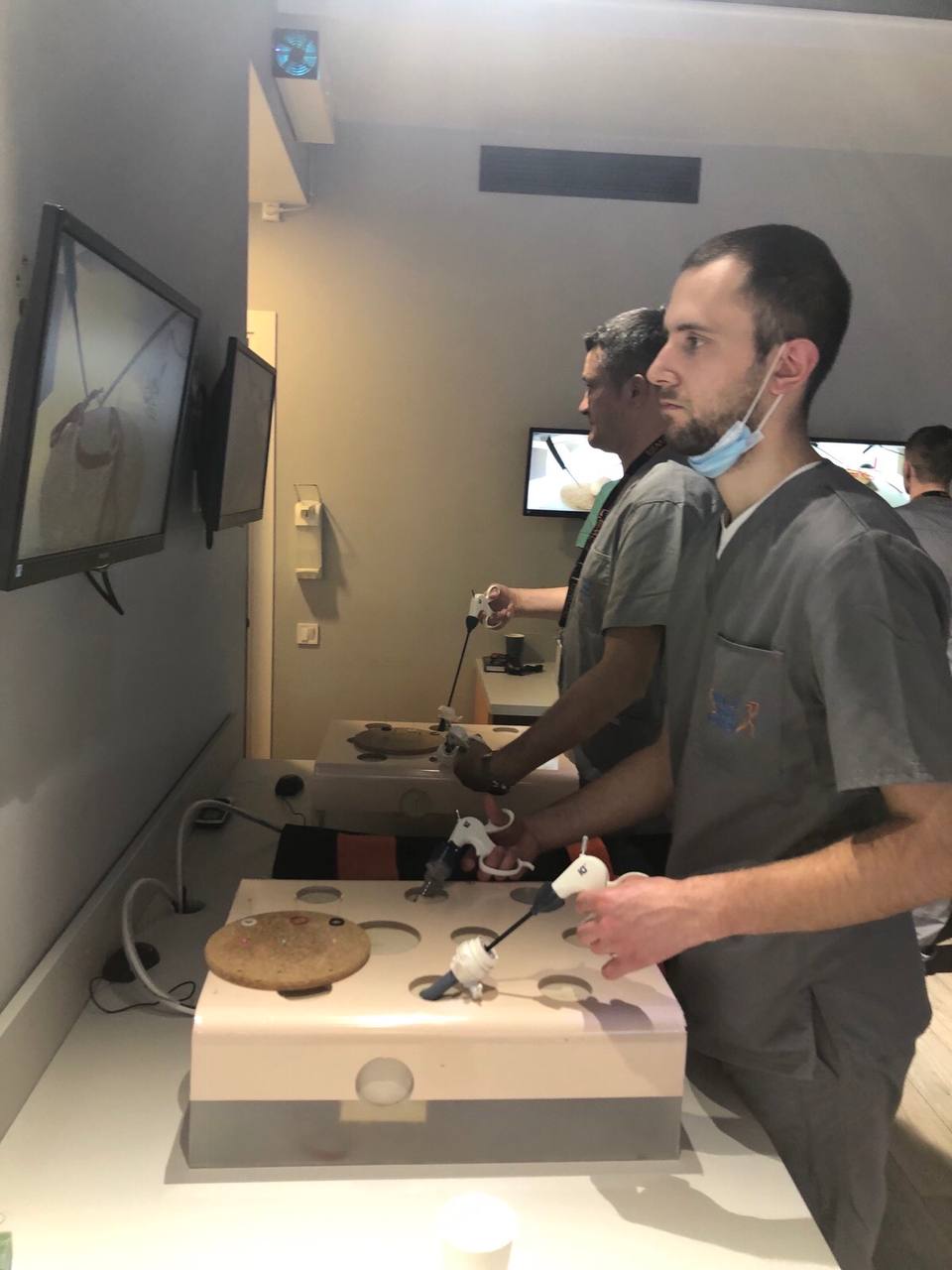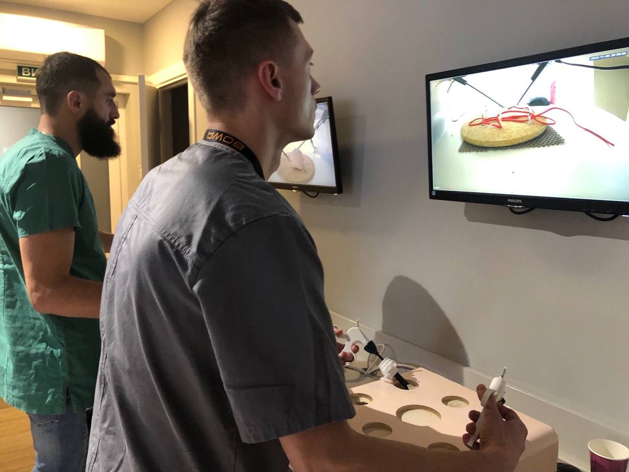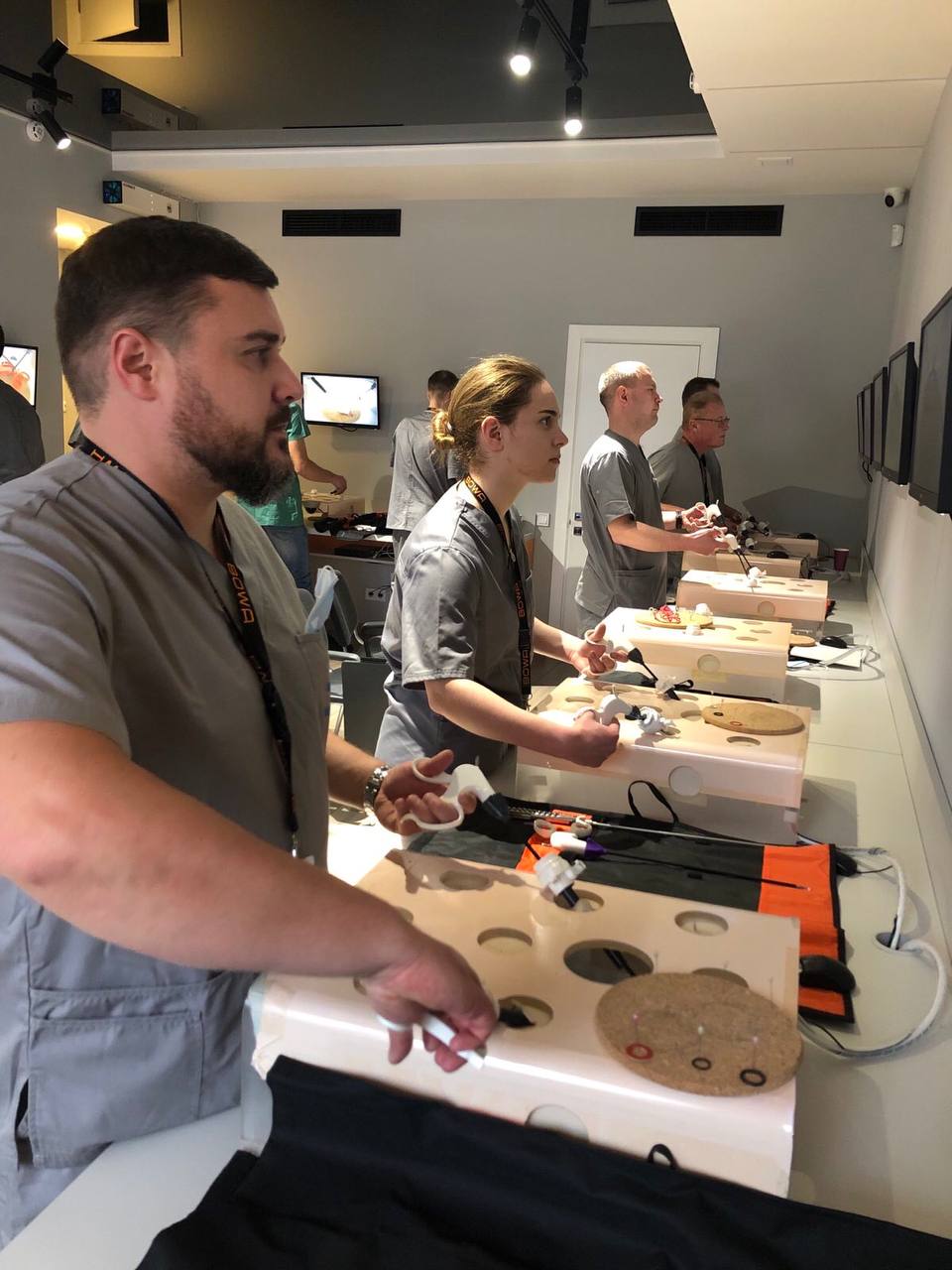 На лапароскопічних тренажерах курсанти відпрацьовували навички диссекції, лігування, шиття та формування вузлів.