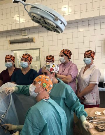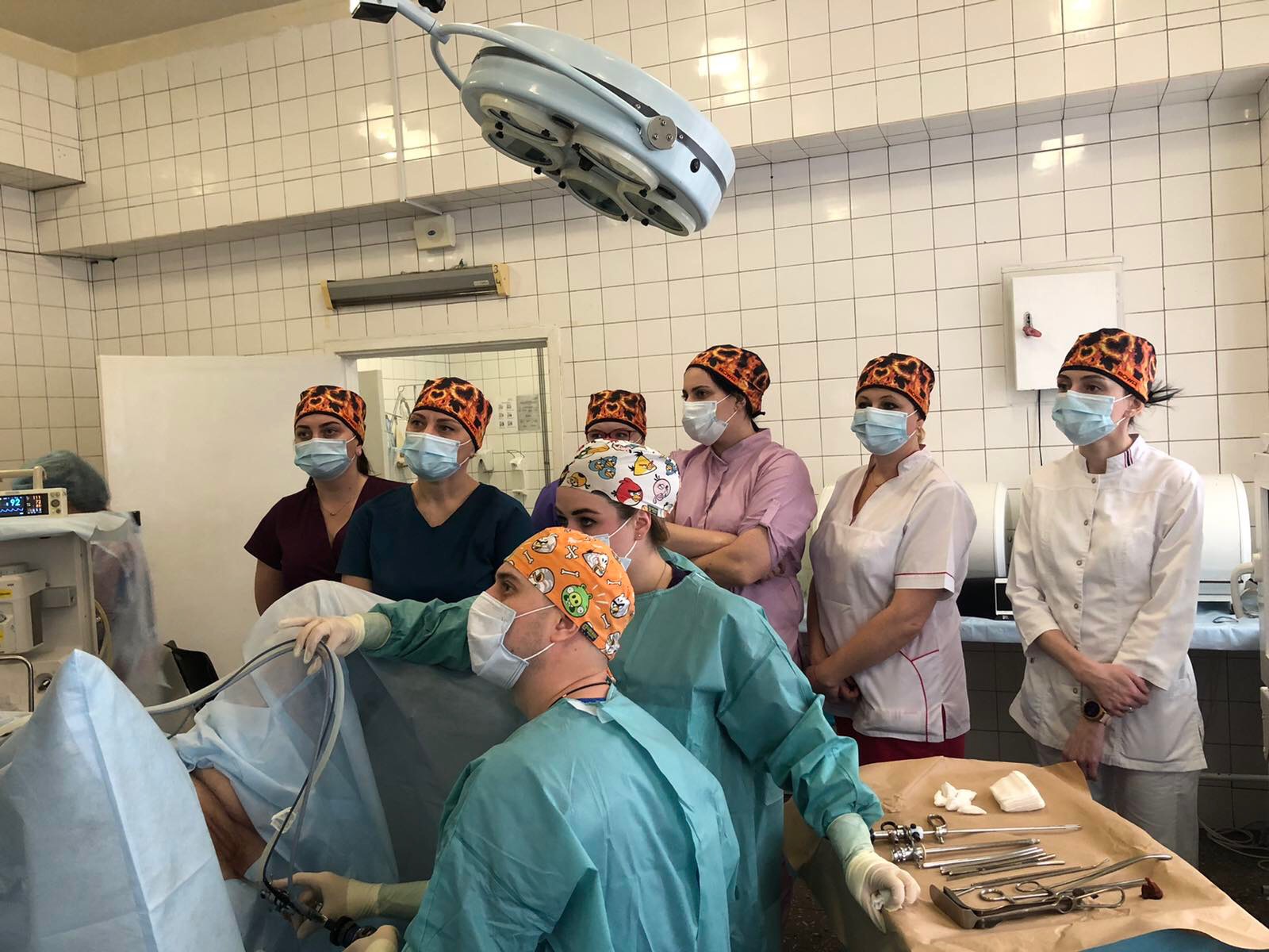 Учасники курсу асистували доктору Чайці К.В. і куратору курсу Жихарському Р.В., які успішно виконали 9 гістерорезектоскопічних операцій.
