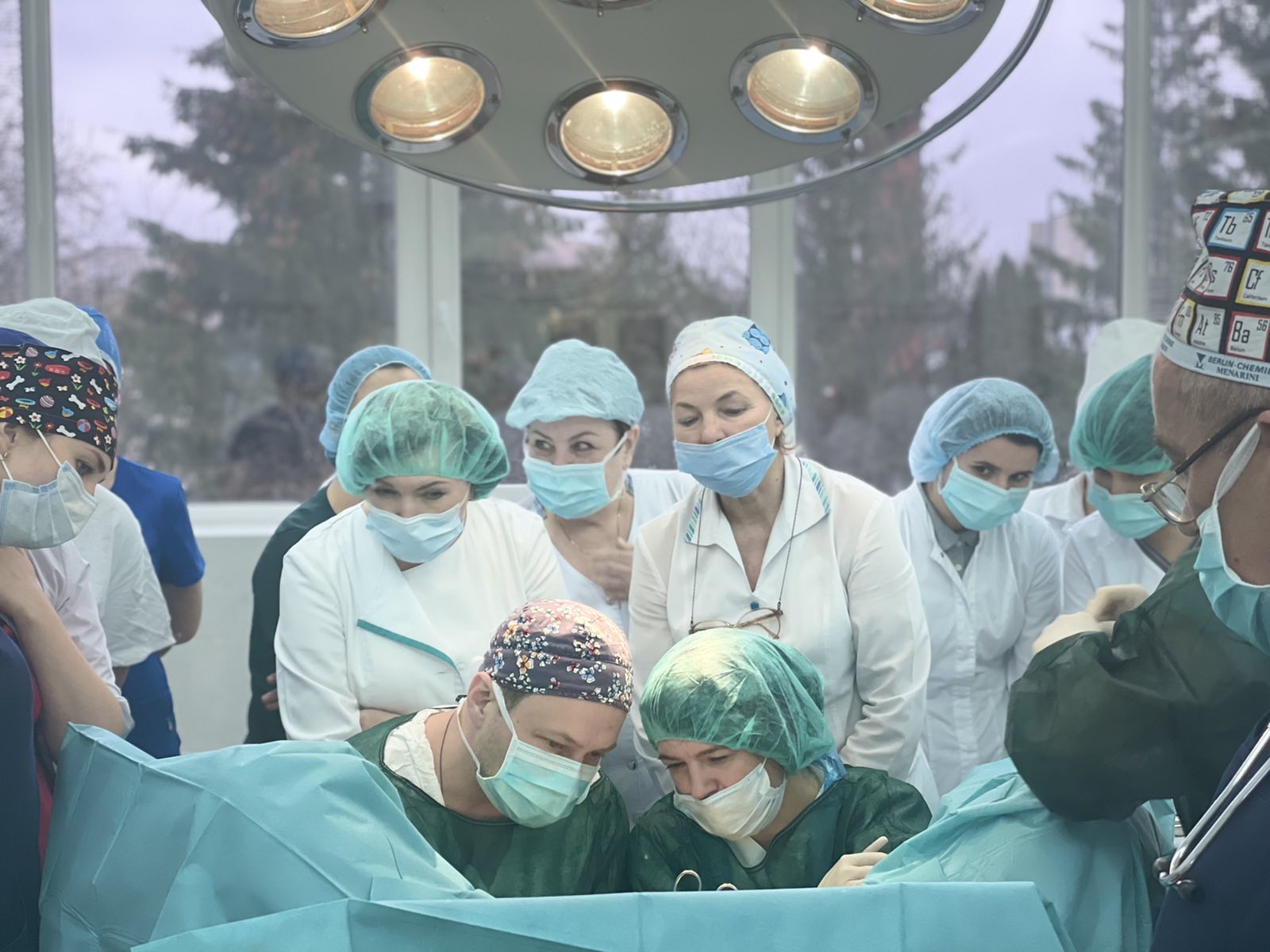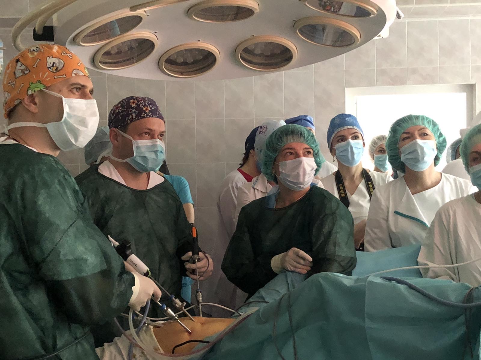 Майстер-клас відбувся у форматі «живої хірургії» гінекологи розглядали складні клінічні випадки, також асистували професору Чайці К.В та Жихарському Р.В. та успішно виконали операції.