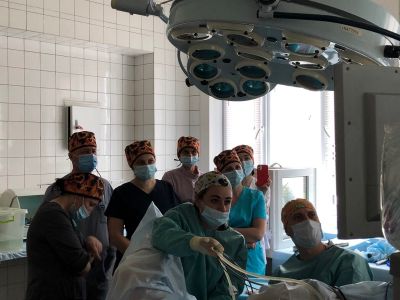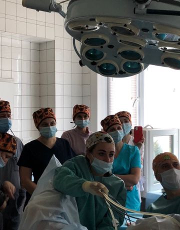 Учасники курсу асистували доктору Чайці К.В. і куратору курсу Жихарському Р.В., які успішно виконали 9 гістерорезектоскопічних операцій.