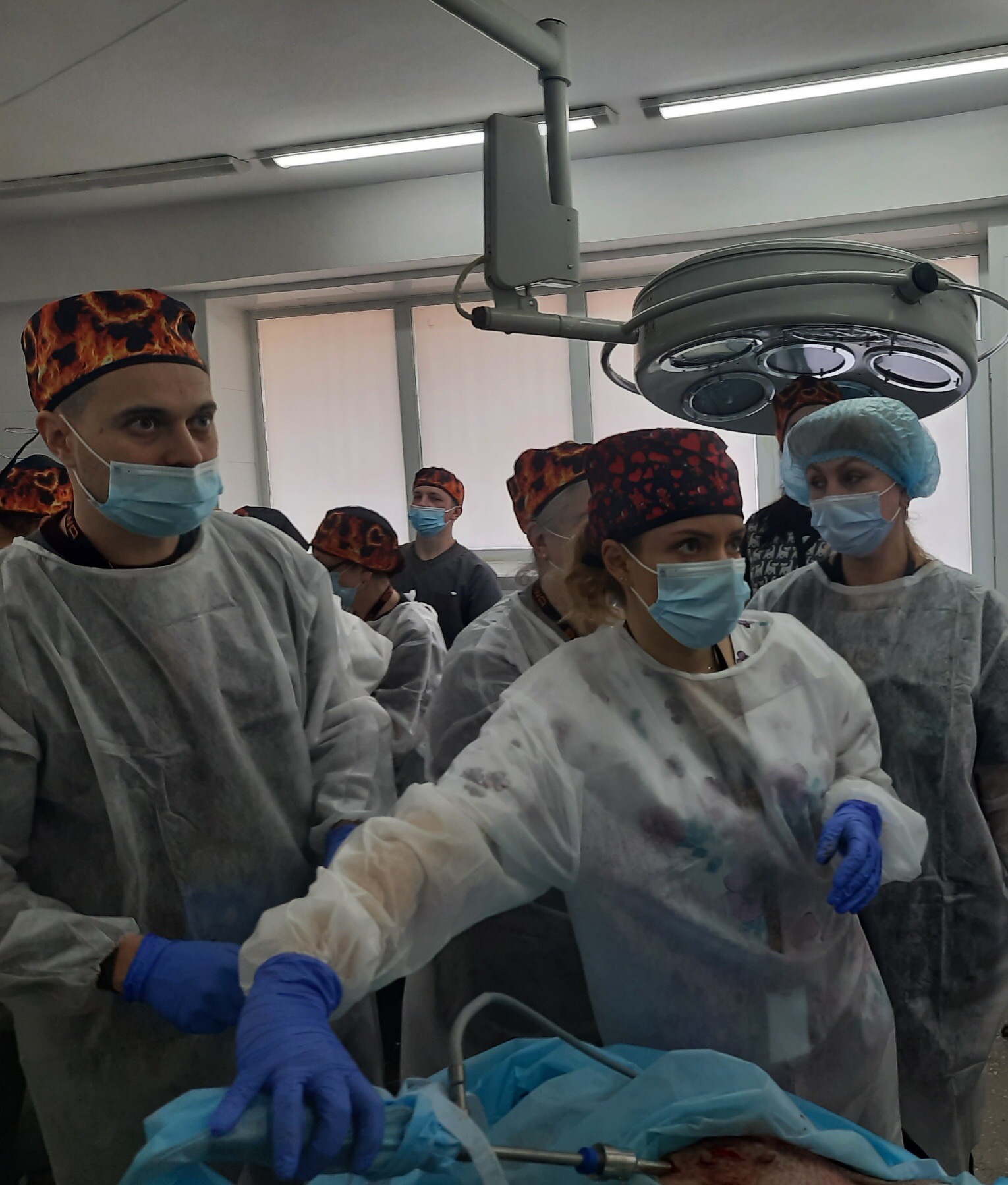 Особливу увагу було приділено практичним заняттям на тренажерах-симуляторах, де курсанти відпрацьовували навички дисекції, лігування судин, накладання лапароскопічних швів.