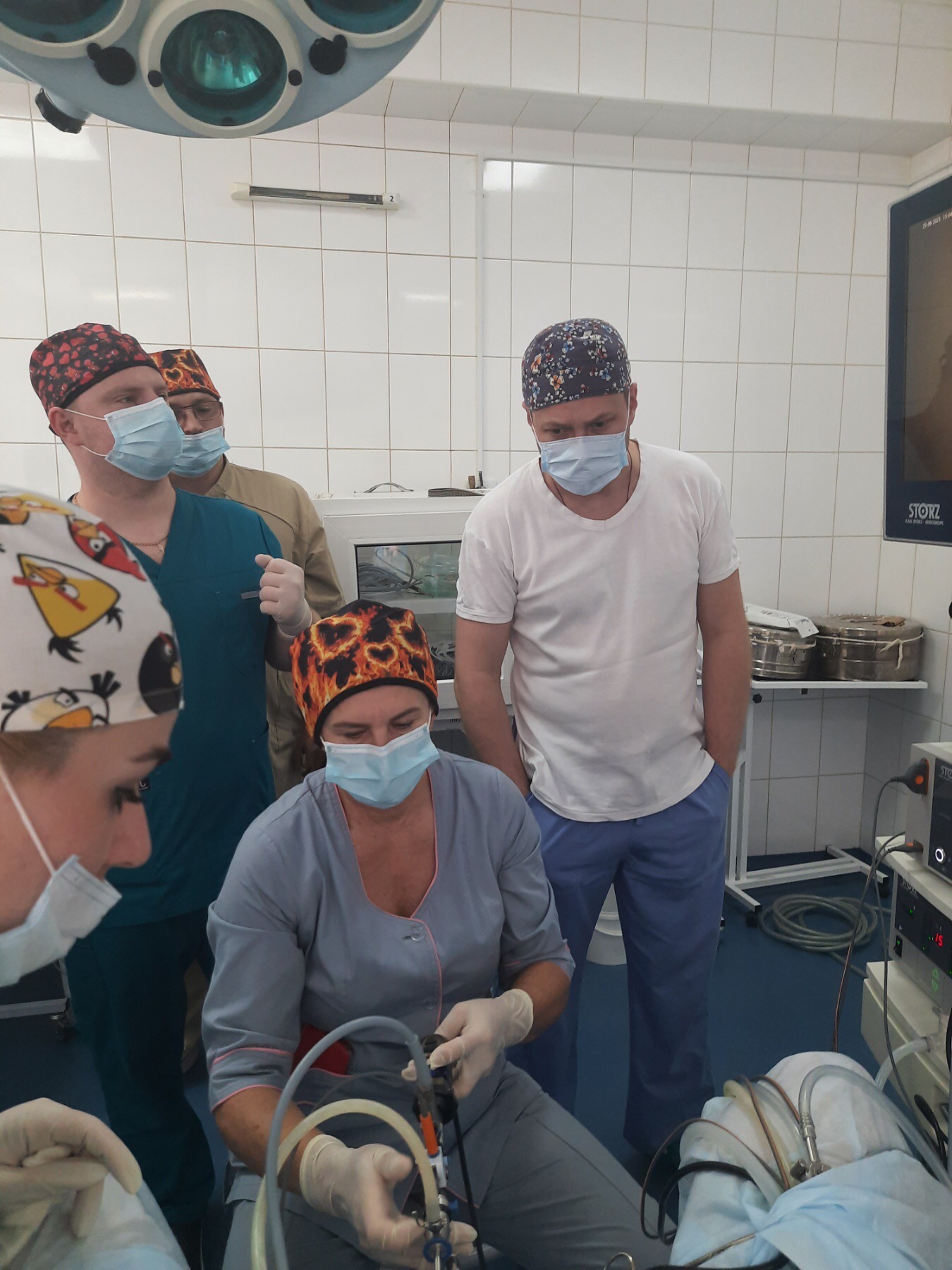 Учасники курсу асистували доктору Чайці К.В. і куратору курсу Жихарському Р.В., які успішно виконали 7 гістерорезектоскопічних операцій.