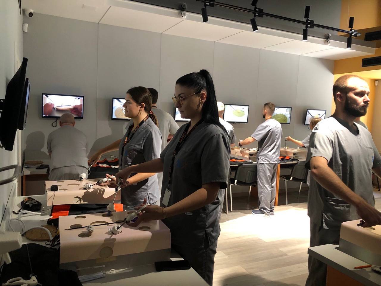 На лапароскопічних тренажерах курсанти відпрацьовували навички диссекції, лігування, шиття та формування вузлів.